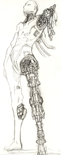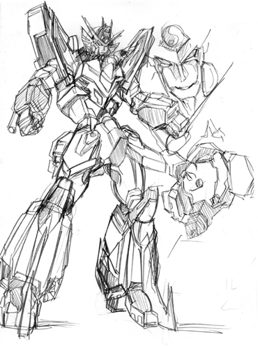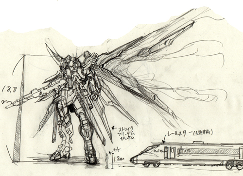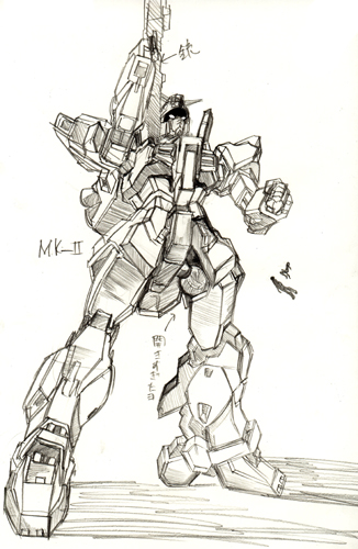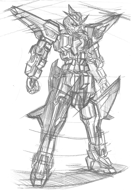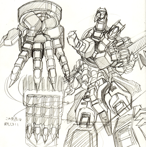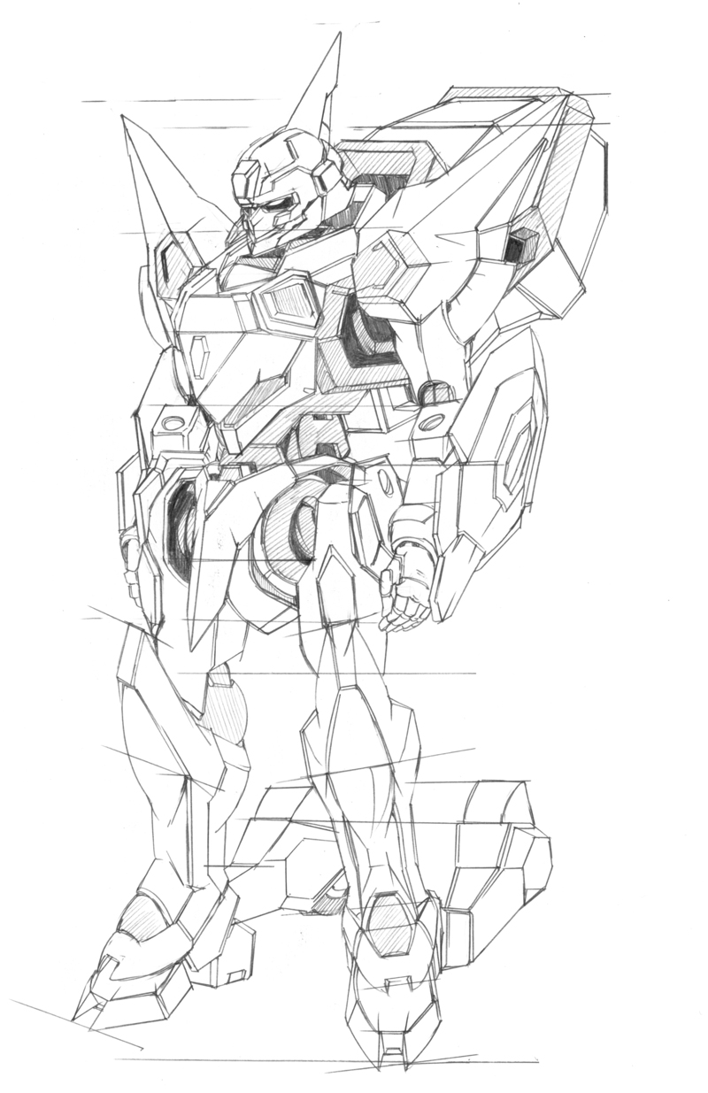 × [PR]上記の広告は3ヶ月以上新規記事投稿のないブログに表示されています。新しい記事を書く事で広告が消えます。 構造をろくに知らんと描こうとするとこうなる。 部分部分のパーツで見ないで全体としていえるのは二点透視なのかな? 一人で一から描きたい簡易な立体物を正確に描ける技術は誰にでもある。問題はそれだけでは存在として価値はなく、そいったものが集まるときに全体として成す構成的[例えば人型]な位置関係に歪みが生じます。正しい位置に描けねぇ!尚且つ部分部分の構造その物すら曖昧となるとヒギィすわ。 ガンダム00のデザインについて いいんじゃないかな? ガンダムの動きがいいとか、あおりがいいとか、この作画がいいとか、色々感じるのでしょうけど。おそらく、ガンダムそのものというよりはガンダムから感じられる人の動きとかくびれだったり雰囲気だったりに尚且つ鉄[Fe]を感じるからカッコいいとかいう感情が生まれるのだろうと自分の中で思った。 今回のデザインはより人の動きやシルエットに対応するようになった。特に外腹斜筋のあたり。そのことからもカッコいいと感じやすくなったんじゃないかな。今まではデザイン的な構造上どう考えてもありえないポーズをしてたけど、実際そういうポーズこそ人らしさを感じとれていた。でないとただの箱が棒立ちでそこらへんの空き缶見ているようなもん。 あとプラモで若干人の肩の機構に似たように作られていたのが気になった。 人体という定規を模写によって自分の頭に作っているわけだが、このことは人体に限ったことでなくメカでもいえると思う。ガンダム定規を自分の中に作るべくメカ特有の手だったり関節を部分的にいろんな方向から描けばよいと思う。でも結局それも人体に従属するものから派生しているので人体は基本中の基本。模写ってオリジナリティーもなにもないのでその意義が見失いがちだが、自分は定規をつくるための定規を洗練していく鍛錬と解釈しました。 ガンダムに腕組みが十分にできないのは人間に置き換えたら肩甲骨(鎖骨)の可動に対応する機構がないのが一つの要因に感じた。もちろん胸が出っ張りすぎというのが根本なのですが。でもこの出っ張りがないとかっこよさなくなるし。それを解消したいです。あとせっかく筋肉してんだからそれをしっかり取り入れたメカデザがしたいぜ。やはり隠す関節でなく魅せる関節くらいの勢いがほしいっす。でもそれをするにしても既存の作品のメカを把握しなければ同じことしてるじゃんってことになりかねないのでとりあへず知識の吸収。 |